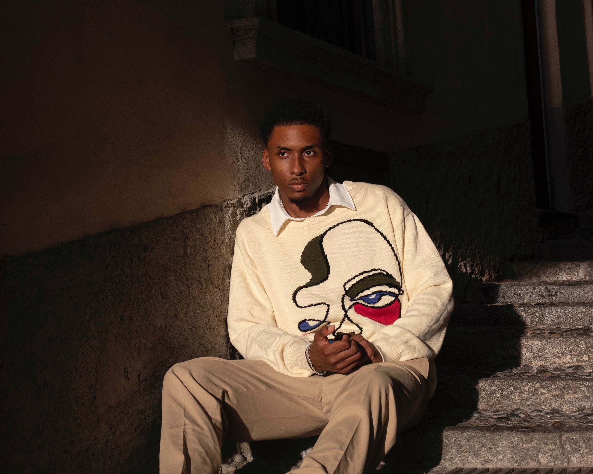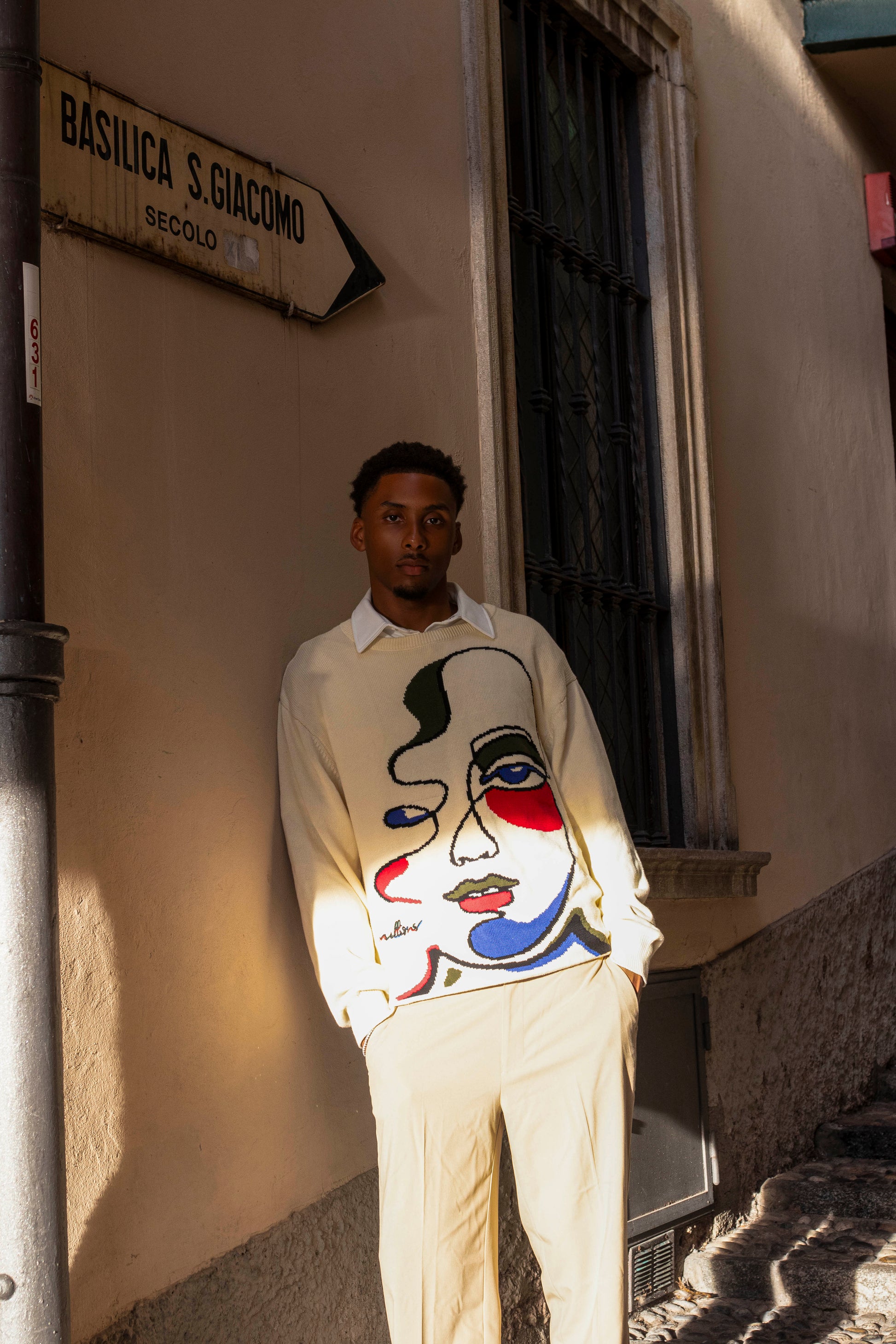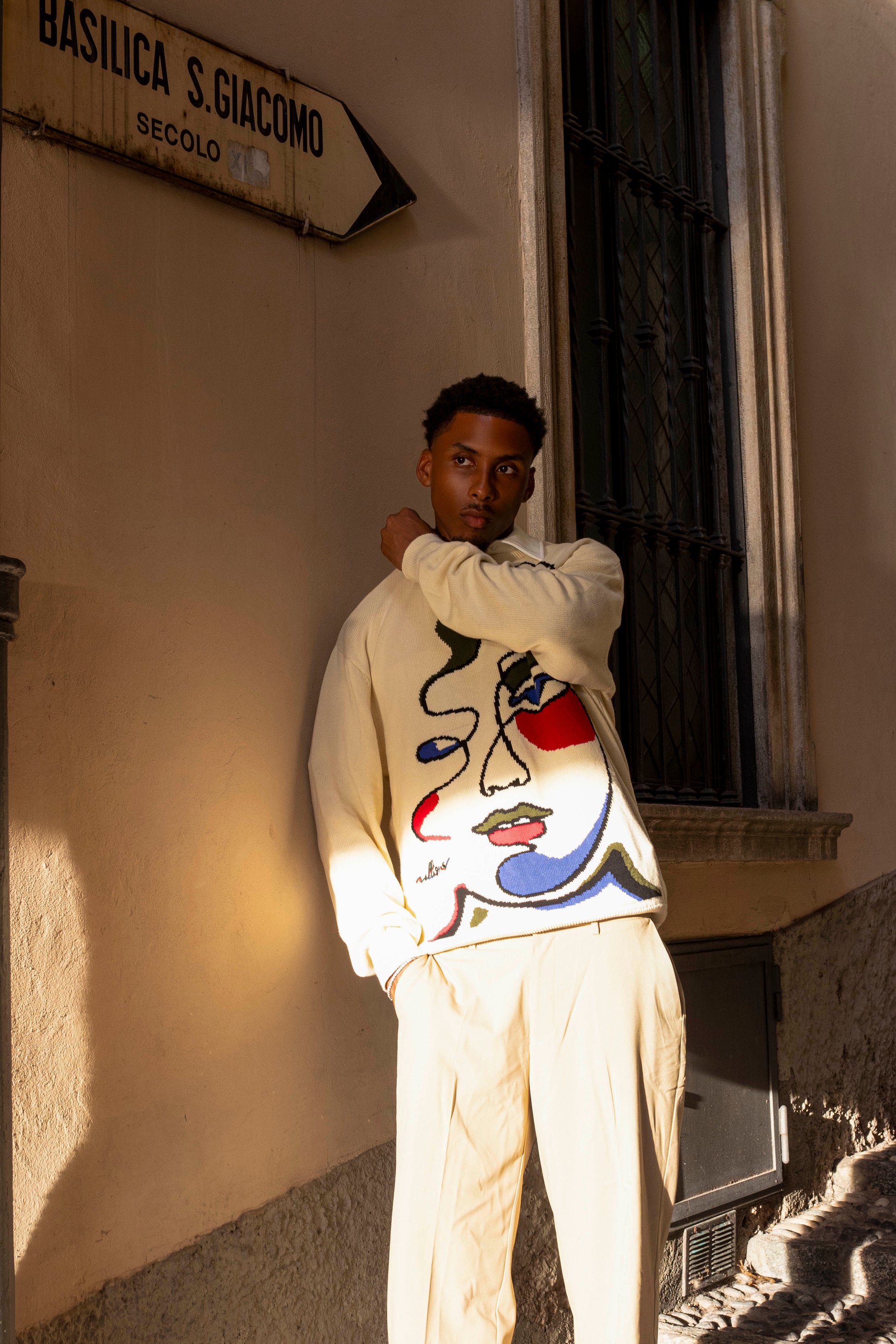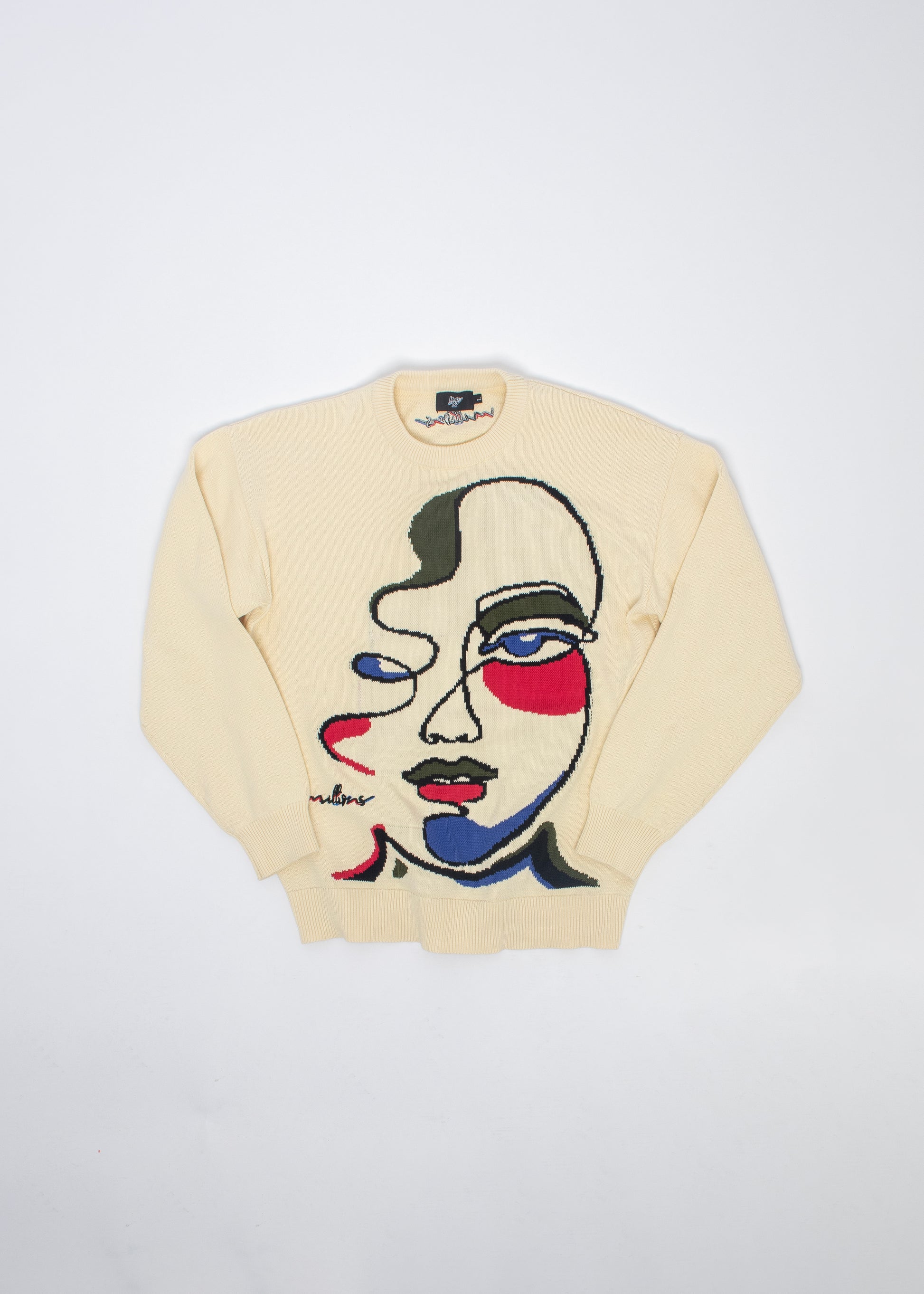 This piece represents change — artistic, intentional, and elevated. Crafted with a premium knit construction and finished with a bold abstract face graphic, it blends quiet luxury with expressive design.